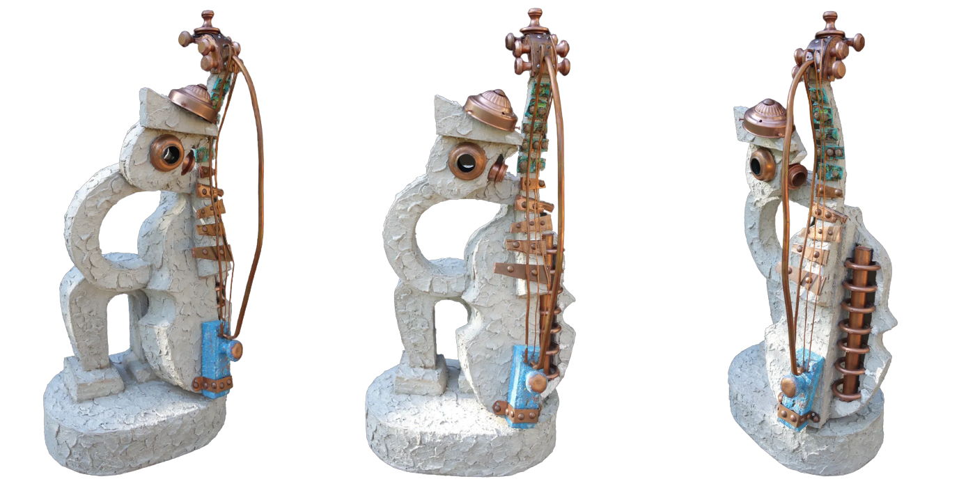 With copper accents, found object, and bold palette knife textures, this jazz sculpture comes alive. It’s modern, cubist-inspired style delivers a refined yet playful impact and instantly becomes the centerpiece of any space.